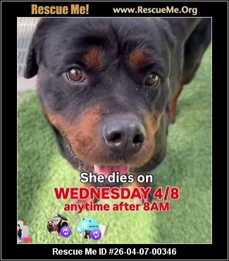 26-04-07-00346D134Coco (f)(female)RottweilerLos Angeles County, Los Angeles, CAID: 26-04-07-00346